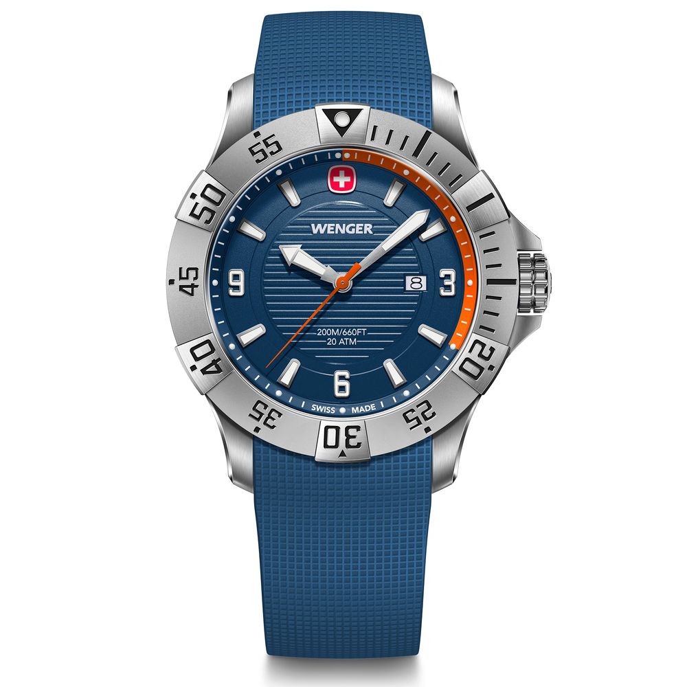 O Wenger Seaforce 01.0641.140 é um relógio Swiss Made desenvolvido para quem busca desempenho e elegância em qualquer situação. Criado para enfrentar ambientes exigentes, ele combina design esportivo refinado com funções essenciais para aventuras aquáticas.
