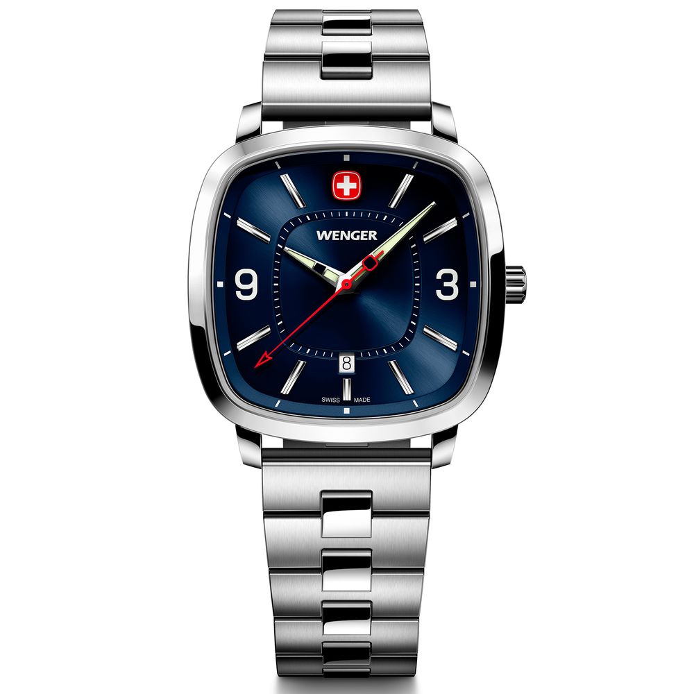 Relógio Wenger Vintage Sport Mostrador Azul Pulseira de Aço