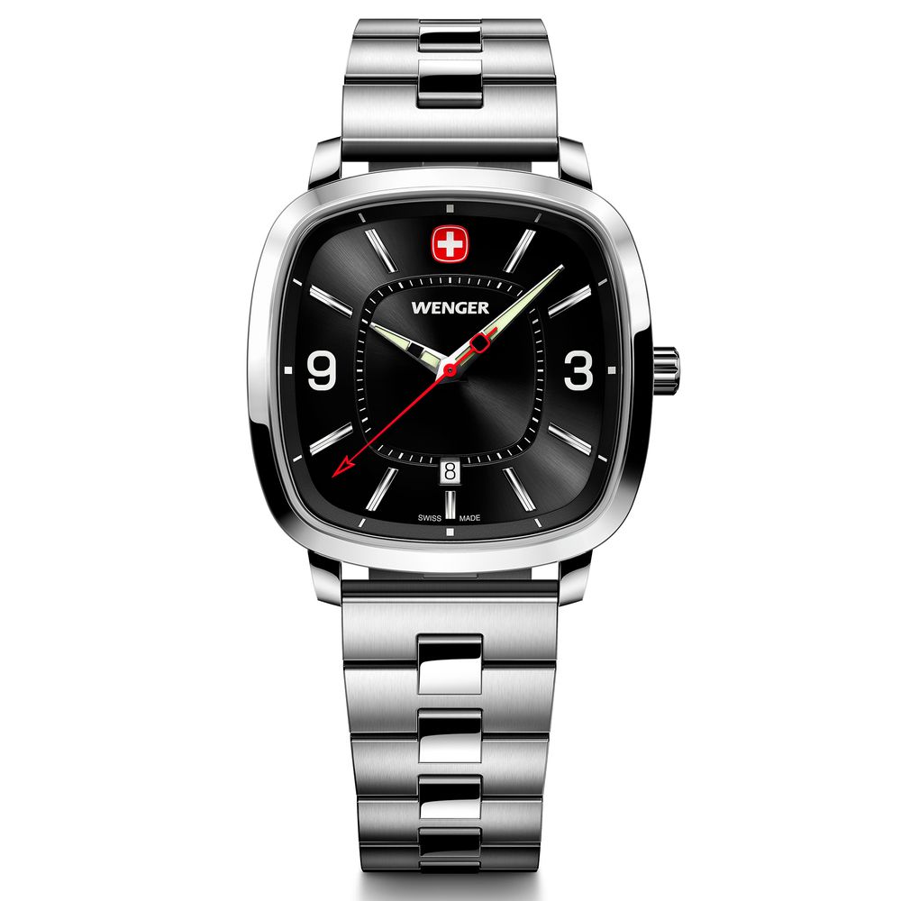 Apresentando o Vintage Sport – um relógio elegante e sofisticado! Nossa inovadora caixa de relógio em forma de esquilo tem o formato do logotipo Wenger e é fabricada na Suíça para o máximo nível de precisão. Com uma garantia de 3 anos, você pode confiar que seu relógio foi feito para durar. E com um mostrador clássico escovado com raios de sol, janela de data às 6 horas e índices prateados com números grandes, você poderá dizer as horas facilmente, mesmo no escuro, graças à Super-LumiNova(R). O logotipo vermelho e branco às 12 horas adiciona um toque de estilo. Algumas pulseiras são feitas de PET parcialmente reciclado, enquanto as opções de pulseira de aço inoxidável são equipadas com uma fivela deslizante para facilitar o ajuste do tamanho. E com nosso sistema de liberação rápida de mola, você pode trocar facilmente as pulseiras rapidamente. Vintage Sport é a escolha perfeita para pessoas urbanas e esportivas.